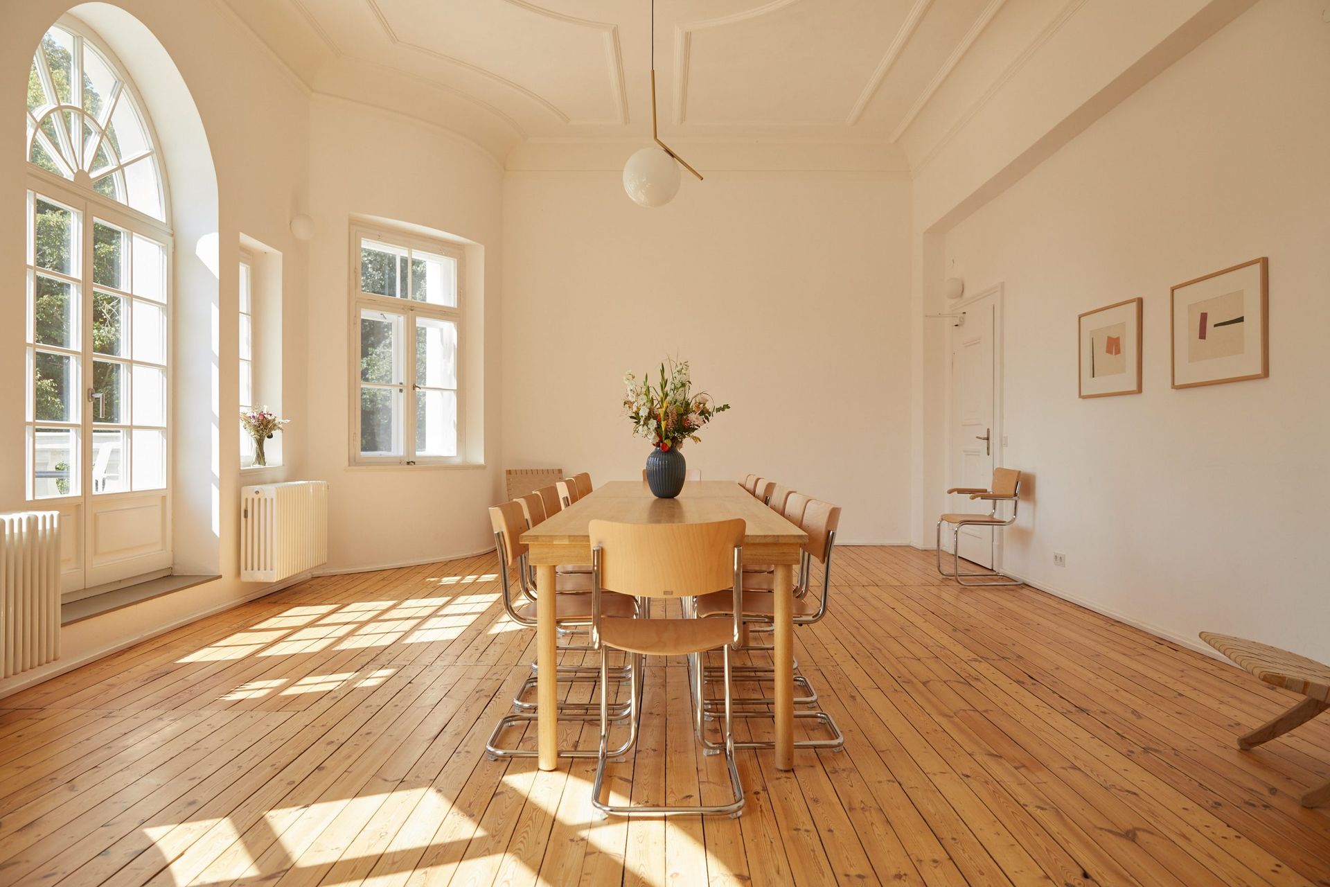 Zwei große Seminarräume, der Salon und die Natur in der Umgebung bieten uns viel Platz zum Schreiben, Reflektieren, Bewegen und Austauschen.